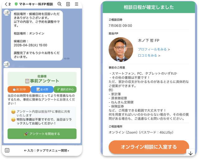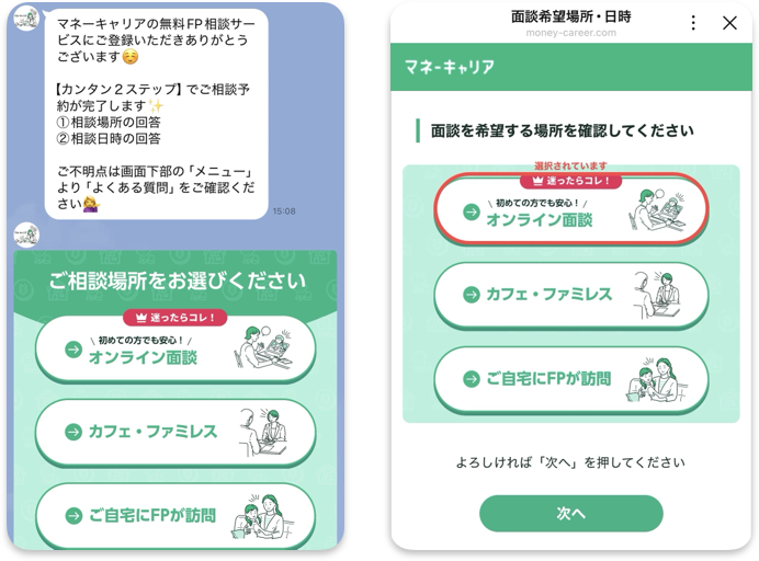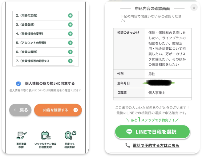 ②LINEで相談予約(1分)